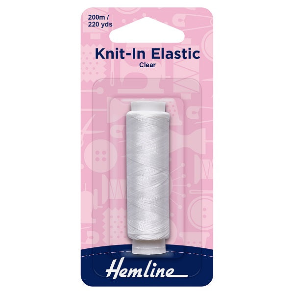 Clear elastic thread for knitting and crocheting. Helps to provide added tension when knitting ribs and cuffs on socks and sweaters. Use with knitting or crochet yarn. 200m/220yrds.