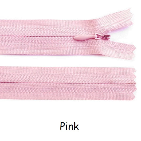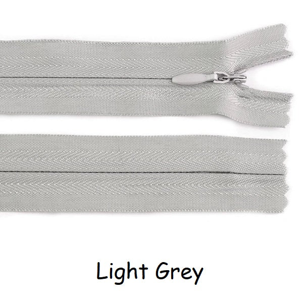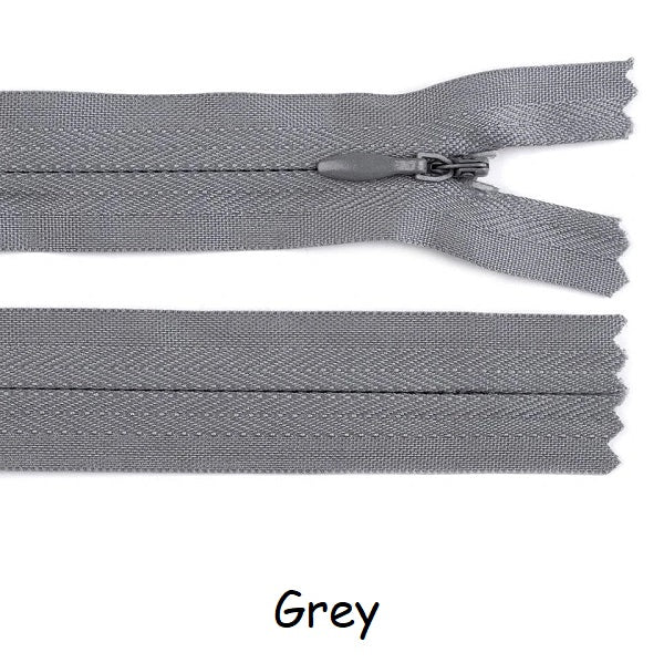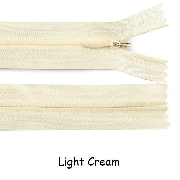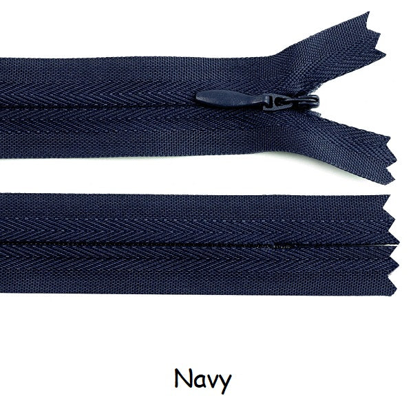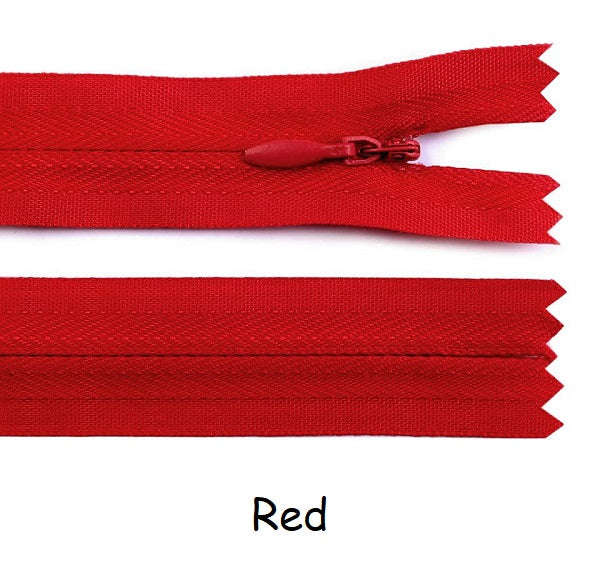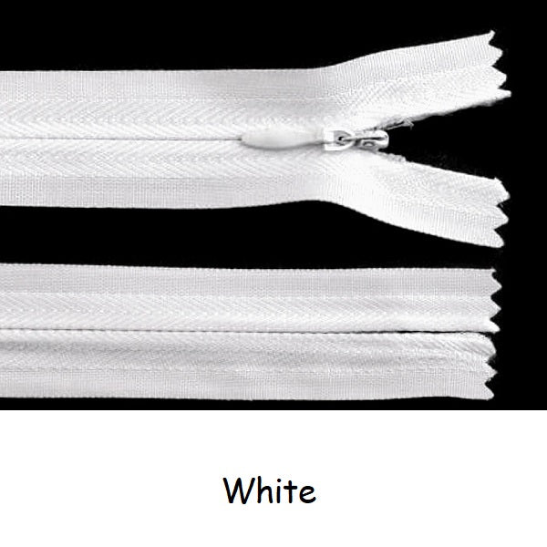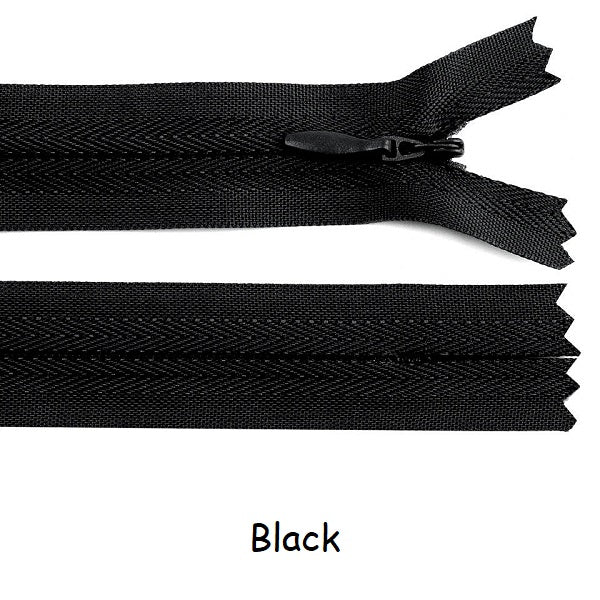 Invisible zippers are designed for dresses, leotards, sporting costumes, gymdresses etc. These closed end zips have an autolock slider. Available in three lengths 22cm, 40cm and 60cm and a variety of colours.