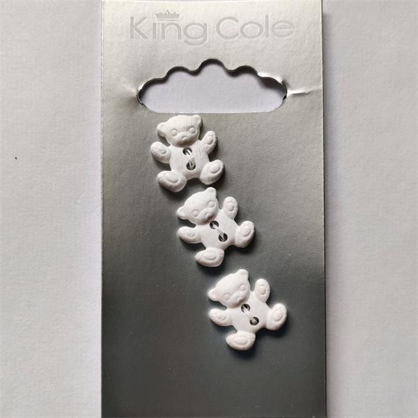 Card of 3 white teddy bear shaped buttons approx 15mm